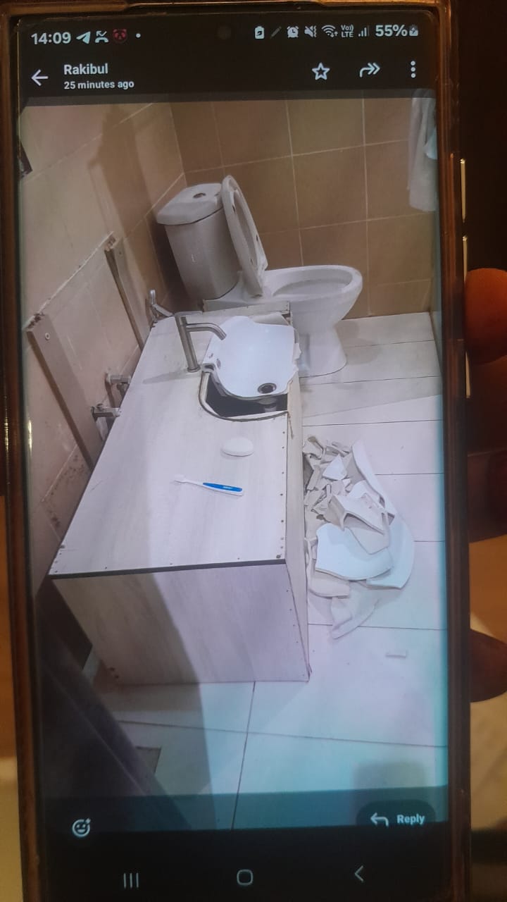 š« Extremely Poor Washroom Quality The washroom in our room was in horrible condition. The sink was mounted on a fake wooden counter made of cheap local sheet material ā not even real wood. It was so weak that even a light touch could cause it to fall apart. One of our group members accidentally slipped, and the sink counter collapsed and the sink broke.