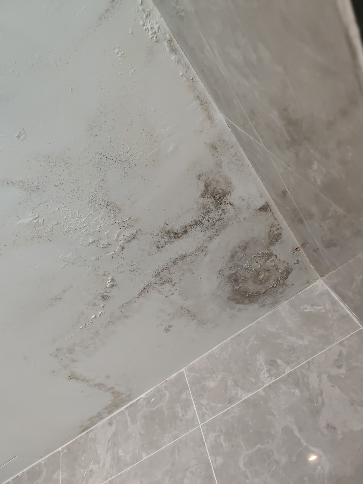 Inside, the bathroom had only 1 flickering light and black mould covered the ceiling. The room was humid, smelly, and felt unsafe. The bathroom door even had a public toilet-style latch.