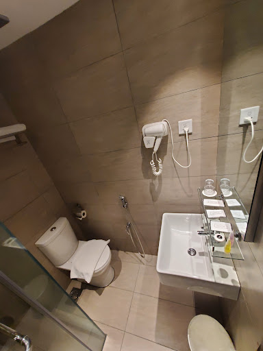 Anyway, the room is clean, adequately spacious, the electrical sockets are very practical and at right places. The bathroom has good water pressure. Basic amenities like shower gel and shampoo are provided.