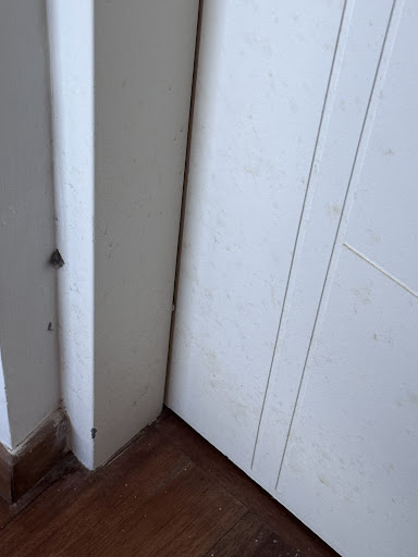 A minor point, the front door was stained and a strip of concrete had fallen off the wall next to the door frame.