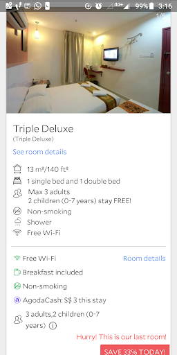 Read moreFirst impression totally threw us off. It looked like we were checking in a prostitution dent. Staff were uneducated and do not know English at all. Upon check-in, I was only given a single key for the room power supply. The funny thing was, I booked a triple deluxe room. How on earth do you expect 3 guys to share one key that has to be in the power supply? The receptionist simply answered ‘The reception is open 24/7 and we will assist you’. Do you actually think I have no other work but to come down every time the door is locked? She had a very stupid look on her face. ||||The hallway to the rooms were terrible. It felt like a prostitution dent. Rooms were worse. So dirty and the toilet sink was clogged up. Shower wasn’t working and so much rust in the bathroom which is a hazard.||||Breakfast was disgusting. It was as if they were giving us for free and it tasted like dog food. Horrible experience! We shorten our 4 nights stay and moved to another hotel the very next day. The receptionist simply threw our deposit on the desk.||||DONT EVEN THINK OF...