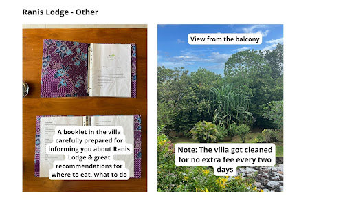 *The hosts prepared a booklet for guests with great recommendations for where to eat, attractions in the island etc. which makes planning easier for guests. We tried a lot of food place recommendations and they all turned out to be great.