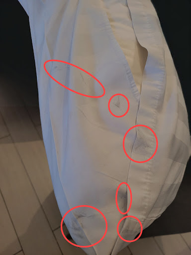 What's worse?? The comforter and pillows were filthy! They had stains of makeup foundation, chilli sauce, oil, black spots, grey stains, dust bunnies etc. The curtains look elegant from the inside but step out into the balcony and look at the outside of the curtain, you will be horrified to see tons of splatters of reddish copper stains (I hope they are not blood). There is also a spider web with a red spider living in the corner of the reading table. The mold is visible on the pillows and stinks.