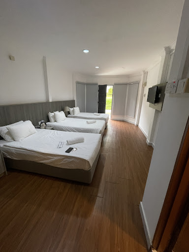 We booked two units during our stay. The first was an apartment with 3 single beds, located right beside the forest. It was quiet and cool, with fresh air and a calming atmosphere. However, it gets extremely dark at night due to minimal lighting, and unfortunately, there was a strong garbage smell nearby. It might be suitable for larger groups who need space and don’t mind basic conditions.