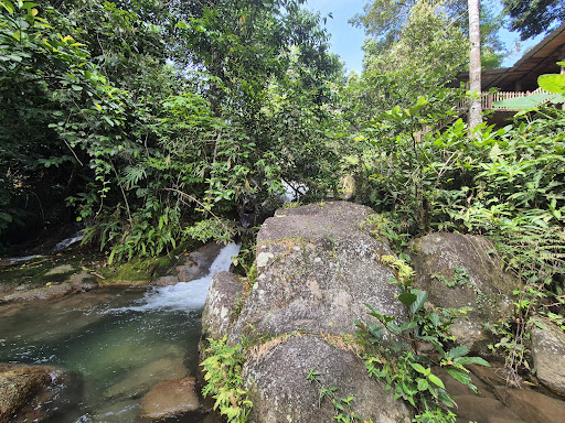 Definitely enjoyed it immensely during the day but let's just say I came to greatly appreciate the comforts of modernity came nightfall haha. It's fantastic to have all meals next to the waterfall and pretty amazing to slowly drift down the small river pool on a bamboo raft without it being a tourist 'activity'. Climb over rocks upstream to see small fish in a rock pool and incredible lush rainforest. Perfect to spend 2-3 nights here to have 1 full day for sights in Cameron Highlands and another just to relax.||||The 6㎡ 'double room' is a shared hut. The 10㎡ 'family room' is its own hut but also with a detached shared bathroom. The other 3 room types (15/18/25㎡) are all standalone huts with their own ensuite bathroom. We opted for the biggest ''superior chalet'' with its own hammock & detached covered private dining area right out just for the 2 of us even though there are 3 queen sized mattresses - pricey for a hut but it's meant for 6 people and each bed is encased in its own separate mosquito net so it's easier for midnight toilet trips. The whole hut vibrates if someone moves so get your own hut if you're a light sleeper - the 18㎡ one-bedroom chalet next to it is a few meters away. There are more huts higher up & on the other side of the bamboo bridge/river, pretty spread out on slopes.|| The area itself is much more attractive than Ringlet (and other towns) which is a 15-minute drive away... not exactly in the jungle but surrounded by nature - more like a campground with huts built in the traditional Orang Asli style, near a shallow river/waterfall with bamboo rafts you're free to use. Also volleyball net & basketball hoop on the grounds. Paths to the huts are paved in concrete so no problem to have a suitcase - better to have something you can zip up because there are small creatures out and about here and there. Electricity & warm shower plus cell reception in some areas, weak/slow but works sometimes. This whole place accommodates 40 but only 6 guests here then just us since January is apparently their low season, busier in July/August.||||Being immersed in nature means mozzies/ants and more flying bugs especially after dusk past 7 at night - hut's off the ground but not sealed. Okay in the rain, just a little loud/humid - rain dries up fast though. Not cold at night, 18 C and mid 20s during the day. Bed's really comfy & room can be brightly lit inside at night which attracts insects so best have something you can do on the mattress inside the mosquito net where you're 'safe' from too much nature ;) - would recommend keeping a bottle of water & cell phone flashlight inside the net. Whole bathroom gets wet after you shower but dries fast & a couple of times there were ants on the toilet seat when there was heavy rain. Bring your own toiletries/bug spray & an adapter if you don't have Type G plugs. If the sounds of nature might bother you, prepare earplugs. Basically, don't expect a hotel room - it's more like camping/glamping, with stuff flying around/resting on mosquito nets that have a couple of small holes. People who run the place always try to make sure you have everything you need - feels much more personal/genuine than hotels.||||The 15 minute “hike” upriver requires runners at least but just abruptly ends after leading to a burst pipe lol... some bits quite steep and just wide enough for one foot so requires great care. Out the sometimes locked gate, it's 10 minutes down the concrete road to a village with friendly indigenous Orang Asli folks who apparently benefit from the operation of this place... some even come to hang out at the river here. The village has government-built concrete houses and locals are just in regular clothing getting around in motorcycles/cars, probably more modern than you imagine. ||||We were told this inn's owned, built, maintained, and staffed by aboriginal Orang Asli who were previously exploited by tour guides who didn't properly give them a cut for allowing tourists to come so they decided to start their own place in 2013/2014. In fact, apparently non-natives cannot have something like this here so you get to experience their lifestyle somewhat. Muin is the main go-to guy who knows enough English to show us around and demonstrate interesting traditional blow darts and traps. His father owns the right to use the land and some of his extended family work/live on site.||||Really good multi-dish dinner of chicken/fish/ veg cooked over fire the traditional way for 35 RM/night that's only done when there are more than 4 guests here so they also got other tasty local meals for us, different breakfast every morning. There's a kitchen you can use with a fridge & place for doing/hanging laundry. Drinking water in a jug is provided - no trouble from drinking it. ||||Chinese Malaysian co-operator 'Ong Gee Tatt' who speaks English & Chinese is the main contact for tourists, gave lots of info but no pressure to join tours run by another company - 98 RM per person (plus 20 for transport & extra for lunch) for a full day jungle trekking to see rafflesia (biggest 'flower' in the world - wet & muddy after/in the rain with MANY LEECHES that can climb on your ankle, stomach , neck, and face - NEED high top waterproof hiking boots & long socks plus shirt/pants you can tuck in in addition to a waterproof jacket... better go when it's dry!) & the magical mossy forest plus BOH tea plantation - tour started 1.5 hours away so leave at 8 am. Cheaper/half day tours also available. Possible to rent a scooter from here for 80 RM/day to ride around. Another 10 RM tourist tax per room per night.||||Can contact him on WeChat/WhatsApp to arrange pick-up at 'Tanah Rata' at 35 RM or take a taxi to 'Ringlet' then be transferred to the inn. It's 150 RM to 'Tapah' for train to George Town, Penang. We couldn't be bothered with the bus/train/ferry so he drove us in a nice 4-seater pickup truck from our accommodation in Ipoh (2 hours/250 RM) and to Penang's George Town (4