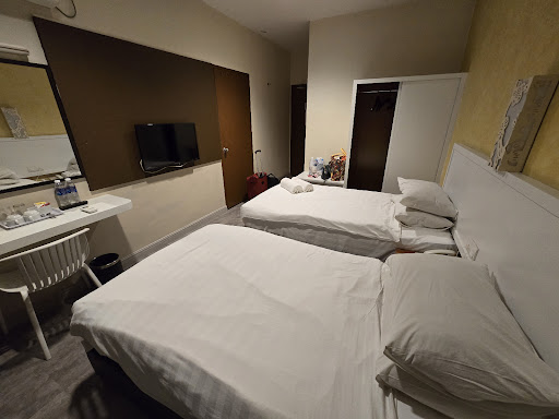 Read moreThe hotel is okay for the price, the reason I booked this place is because it's one of the participating hotels of Penang Eco 100 and the pick up point for the runners. |Positive -|Near the shops and food court. There's an Oldtown cafe nearby and some restaurants as well. |The lady from housekeeping is really nice. ||Negative - |The man from front desk couldn't find my booking, if there were no available rooms we'd be out looking for hotel at midnight. Good thing there was available room. |The same man told me we can stay until 5 pm w/o charge but when we checked out, a different front desk person told us we have to pay 40 ringgit. They agreed to take 20 after I explained I was misinformed. Still such a bad service. ||The rooms are clean but the one for 3 persons is just too small. |Will not...