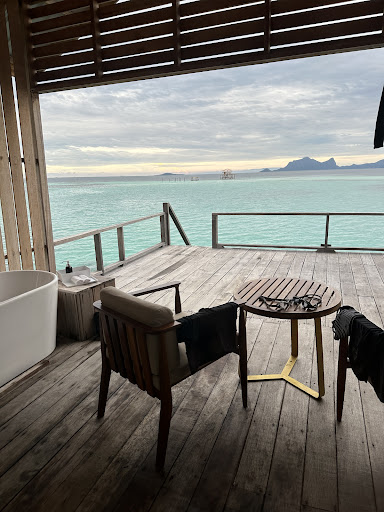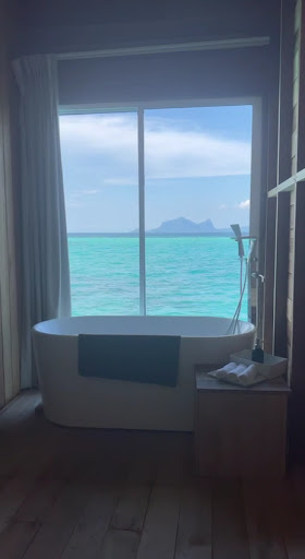 NO PRIVACY NOR TRANQUILITY NOR SENSE OF SERENITY AND QUIET TIME We were paying this ridiculously high rate for a private resort for a sense of privacy but constantly interrupted: a) boatmen crossing over behind the balcony area to sell icecream and snacks every 30min-1hour from 10AM to 5PM EVERY SINGLE DAY with their siren. I wish business owners take them as a supplier of some sort to kasi rezeki to locals there without causing nuisances to guests. We were dipping in bathtub and had to cover ourselves with ladder and towels for privacy. How pathetic! b) random smaller boats were also seen trespassing the same area c) loud banging on door by the service staff there as mentioned above. Install a doorbell for God’s sake.