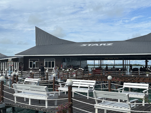Read moreNon so come ci siamo ritrovati in questa struttura, in internet si trovano davvero poche informazioni e per prenotare, dove averla trovata su google maps, abbiamo contattato direttamente la struttura che è prevalentemente dedicata ad un target cinese infatti dei 60 ospiti solo in due eravamo occidentali. Non è un difetto ma va considerato che bisogna adattarsi alla loro cultura, cibo comportamenti intrattenimenti.|Cibo prevalentemente allineato a cinese, che non è come un ristorante cinese in Europa, ma è cinese cinese cinese, anche a merenda veniva servita un brodo molto particolare.|La struttura è fantastica in quanto posizionata con palafitte sul mare, il tutto in non piu di un centinaio di metri calpestatili; il vantaggio è che intanto che sei a cena le tartarughe passano sotto di te e tutto diventa favoloso!!!!|Ambiente bello ma potrebbe essere curato di più, i fondali facendo semplice snorkeling è pieno zeppo di rifiuti, è vero che tutta l'area di semporna è sommersa da plastica ma se tutti facessero uno sforza le meraviglie di quel mare ne gioverebbero, quindi un po di sforzo e fate raccogliere anche la plastica sotto l'acqua della vostra struttura.|La stanza è pulita ed accogliente, un bel balconcino permette di godersi il mare ad ogni ora del giorno e della notte.|Noi abbiamo trascorso tre notti, ma la maggior parte degli ospiti cinesi stava overnight, c'era un ricambio quotidiano.|Dal porto di semporna per raggiungere la struttura ci si impiega 30 minuti di barca veloce.|NOTA DOLENTE: solo sul posto abbiamo scoperto che non è possibile pagare il soggiorno con carta di credito, dopo aver fatto bonifico di acconto dall'Italia sul posto due giorni prima del soggiorno abbiamo ricevuto stressanti chiamate da parte dell'albergo sollecitandoci il saldo o con bonifico o con contanti (se arrivi dalla giungla trovare un money change o un bancomat non è cosa così scontata). Abbiamo trovato molto stressante questo disagio che abbiamo risolto non con pochi problemi chiedendo quasi la cortesia di accettare gli euro al posto dei myr.|Personale abbastanza gentile, a parte la direttrice che alle volte fa forse finta di non capire quello...