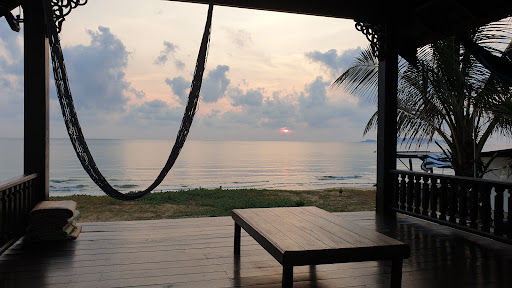 Situated between Marang and Kuala Terangganu on the east coast of Malaysia, Che Beach House was an unequaled gem of a place for us in the uncertainty of the covid-19 shutdowns worldwide. The hosts could not do enough for us to keep us safe and informed of developments, particularly in Malaysia. Che Beach House is a small guesthouse with a small number of rooms, placed directly on the top of the beach. It is relatively new. ||||We were allocated a nicely decorated queen-bed airconditioned room, which was on the lower floor. It was exceptionally clean and the bed comfortable. The room had a wardrobe and towel airing rack. There was no television. ||||There is no breakfast available, but we had full use of the small kitchen. No cooktop, but there was a full-sized refrigerator with freezer, toaster, electric kettle and microwave. There was unlimited hot and cold filtered water available from a free standing dispenser. There was a Treleaf supermarket within walking distance to buy any needed groceries.||||Outdoors, there was a covered area for us to park our hire car so it was off the street at night. Two outdoor sitting areas, one part of the building itself and a pergola with chairs coffee table and hammock directly on the top of the beach. A perfect place to sit with a cup of coffee or tea and catch the sea breeze.||||Chris removes garbage from their stretch of beach nearly daily. It seems to be washed in on the tide. Neighbours played with children in the afternoon, but other than that I never saw anyone else on the beach. It was windy when we were there, so though the sea was clean, clear and enticing to look at, we deemed it too rough to swim. The sand is course and golden. Still pleasant to walk on for an early morning or late afternoon stroll.||||We would especially like to thank the hosts for a very pleasant, quiet and relaxing stay. Chris, thank you so much for the kindness shown and advice given when it became obvious we would have to return to Australia. We fully intend to return when all the covid-19 madness is over and continue our journey...