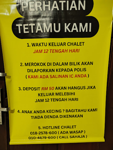 Read moreThe view and room quite nice.|But The services are bad.|We are come for late check in and fully paid via agoda. When we were arrived they ask for IC, just a normal procedure for check in. chalet/car park and check in counter are a bit far in between, have to walk if your go for park your car at 1st. They ask for deposit of guarantee even we are already pay in full amount through call and not at the check in counter. We are upset because they lock the door for the next day when we are come back from our outdoor activities around 10-11pm which is we were too tired for all day activities and needs our room quickly. We have to wait a bit longer at the counter because its close and then we have to wait again and let them settle about the door locked and they say it was automatic locked which is not a reasonable reason for us. |For us if your need a deposit of guarantee you have to mention it in agoda before we pay in full.||our vacation was spoiled with this matter, and we will not come again for stay...