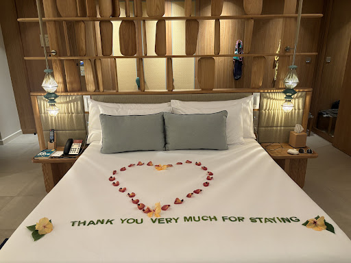 My wife and I arrived for a one week stay on April 4th 2025, just 3 days after its official opening. Excited to be staying in something brand new but also nervous at the same time that we’d end up finding defects with our room etc. as you often get this when taking delivery of a new property. Thankfully, that nervousness soon faded upon arrival as everything from check-in and settling into our water villa went so smoothly well, along with meeting the team of staff that couldn’t do more for you.