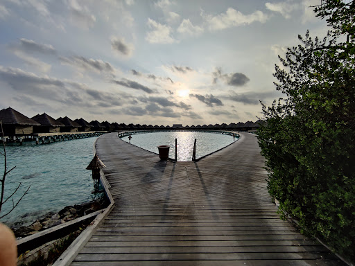 Tips: They hire out good quality Snorkel equipment and fins for free that you can keep for the time you're there. Snorkel around the island - beautiful colours, stingrays, reef shark, loads of powder-blue surgeon fish. Swim/ walk to the lagoon edge. The lagoon (the side of the villas not the beach) at it's highest point was hip height, walk out to the lagoon edge, the reef is amazing. Book one of the short trips to the Coral Gardens - simply breath taking everyone needs to see this once in their life! The free yoga on the pavilion is a great way to start the day. Food is very expensive, book the inclusive deal, where dinner is included, as to pay taxes and service charge on top is really expensive Take snacks with you, nuts, crisps, chocolate etc. - with all the snorkeling you'll need it! Ladies, everywhere is sand - leave heels at home take wedges!
