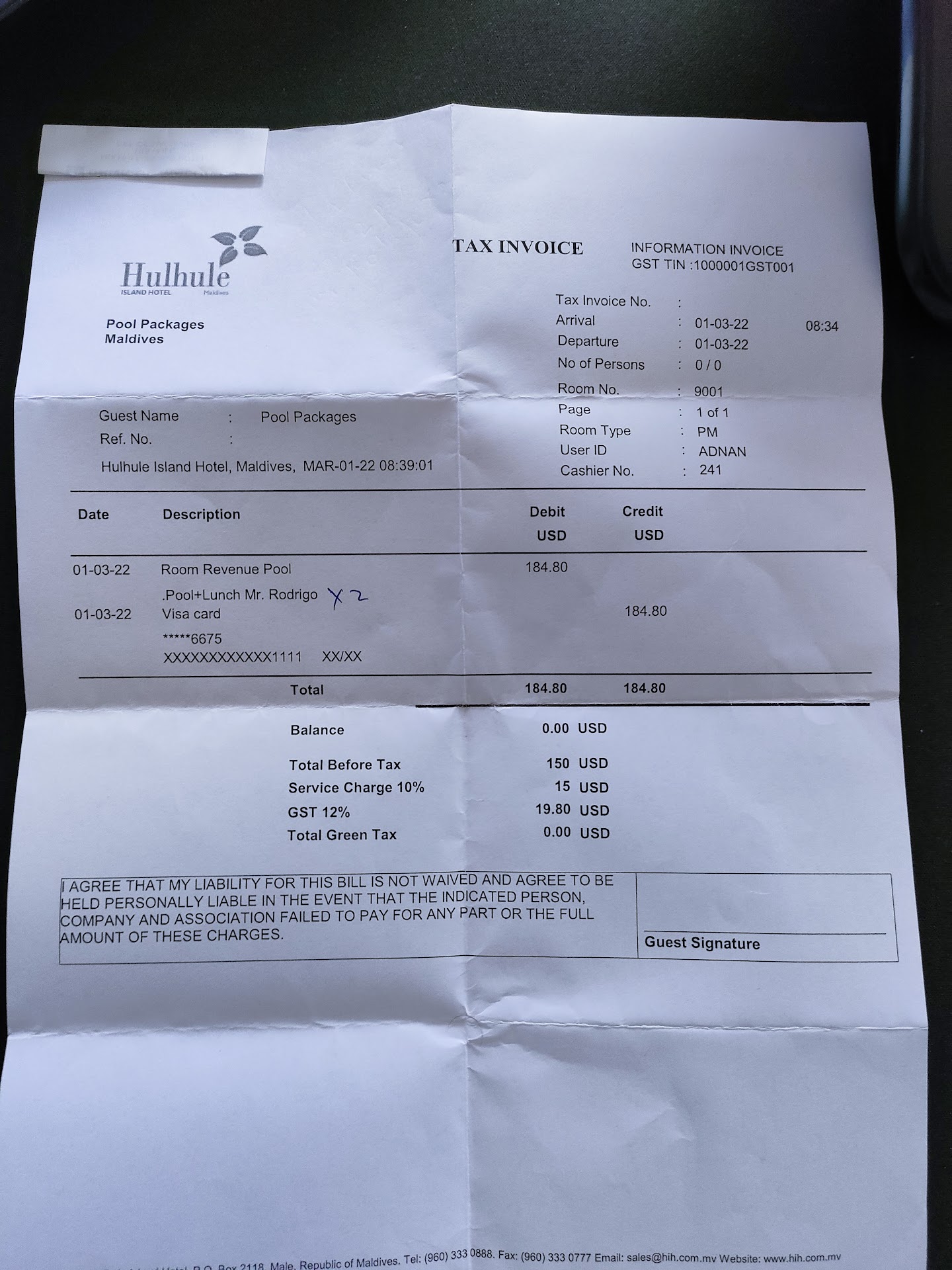 Read moreVERY VERY DANGEROUS PLACE ! Please all be careful and better avoid to go there! First of all the most awful service in Maldives with uneducated Indian waiters who cheat with the bills and money! Especially waiter KUMAR! We ordered a bottle of wine and after we finished it we paid and left! Then after 15 min we were walking across the place again and suddenly another waiter stopped us and said we didn't pay anything! Then their Supervisor came and F&B manager KK who was very very rude and very unprofessional and didn't solve the problem, he just said sorry it was not posted and u have to pay twice! We were shocked! The F&B manager doesn't know what is going in his place and moreover he was so rude to us that we thought he would start to hit and fight! As per him cameras and system showed we didn't pay! It's a magic how professionally that waiter KUMAR cheated! Later we found the way how he did it: : these waiters collect the old bills from previous guests (which usually people never take) and then they save it - later when there is a another customer comes with the same common bill amount - waiter just presents already existing old bill and customer pays it! That's how their waiters avoid to put it to the system and just takes the money! There is a great MAFIA working in that place without any service and any professionalism! We have been so many places in Maldives but this is the most hobble and dangerous one! Dear GM, please kindly look at this matter which happens...