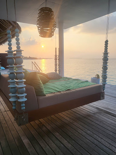 This experience set such a high bar for our other holidays, that it basically narrowed down our future choices to... coming back here! Our overwater villa looked straight into the sunset, making each night start with memorable colours. Moad, our butler, was extremely attentive: after setting up a group Whatsapp, we have been delighted with experiences, choice and careful service. Never did we have to worry about the excellent resort phone app, as Moad was taking care of our every booking and planning need. The app would have been a great choice anyway, as the Internet speed was faster than back at home. I chose to upload and back up my holiday pictures to the cloud directly from the island as the connection was so fast!