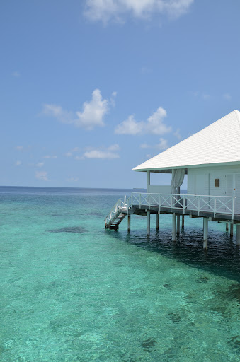 We spent 9 days at stayed in a watervilla facing the sunset, with a large terrace where we had our breakfast delivered to each morning after our dip in the clear ocean. They have 4 poster beds, walk in wardrobes, WiFi and the drinks bar. We loved relaxing and having a bottle of wine whilst watching the sunset on the terrace.