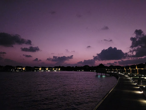 We were greeted in an amazing way, with the General manager Ross and his team all in a line, clapping, ready to welcome us to their island. Another person playing a drum leading the way from the wooden water bridge onto land. We were then given a cold fresh young coconut which was the sweetest coconut juice I have ever tasted. After this our villa host Ismail took us onto his buggy and drove us around the whole island stopping in various locations to explain the different amenities available for us during our stay. This included a sports place where Muay Thai boxing was available (only place in Maldives), badminton, yoga classes and a 24 hour gym. Ismail also showed us the diving centre, spa, restaurants and bars until finally taking us to our water villa where our bags were already there in our own walk in dressing room. The villa was amazing. Our own bikes outside so we could explore the island whenever we wanted to, our own private infinity pool, a very nicely kitted out minibar, his and hers sinks and dressing rooms, and our own hot tub which you could see straight down to the ocean in. This room is extremely spacious and very well thought off as it provides everything you need. Even if you wanted to stay in your villa all day and enjoy the views of the peaceful ocean, you certainly can. Our villa host planned every single day for us, came to pick us up on time and offered us soo much advice about multiple things we wanted to do. Once we finished dinner at Spice (which was our favourite restaurant) we met Shameem who kindly showed us his star observatory which he set up at this resort. The knowledge and passion he has, no-one can match. Even though he had an appointment already with another couple, he took his time and gave us a snippet of how powerful his telescope is. We could see the moon, Jupiter, Saturn and many stars so close up. We we sold and booked in to do the star observatory which later on turned out to be one of the most memorable experiences of our lives. Thanks Shameem. We will definitely be back to see you soon!