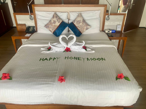We stayed in one of the sunset water bungalows. On arrival the room had been prepared beautifully for our wedding anniversary. The bungalow was fantastic, spoiling us with an amazing sea view and beautiful sunsets. The room was perfect for our needs and was well attended by Manjula, who kept everything well stocked and clean.