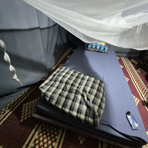 The rooms are what they are. The ac works well. The showers are a bit crazy but it's mauritania. It's some of the best showers we had throughout the country, and it was still cold water in our room.
