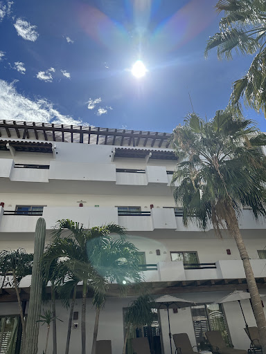 Google Hotel Santa Fe Note: review very long and is by a fairly easy-to-please American. This would be 4 stars if not for the bed. See below. Hotel is located on a main paved road with little to no traffic. Tallest building anywhere around. Clean property. Friendly staff. Short ride from single gate airport was $23, I believe we got ripped off, but it’s better than walking. On checking in, the “concierge” (not associated with front desk) asked if we were members of Villa Del Palmar (we are; but detest this sales tactic when we are just arriving after 17 hrs of travel). This hotel is owned by Villa Del Palmar, the resort 30 min south of here with the new pga golf course. The concierge is right in the lobby so has access to guests to ask if they’d like free excursions in return for 90 minutes (4 hours) of your precious vacation time. WiFi exists but is moderately terrible. A permanent sign with WiFi username and password in the atrium shows their dedication to security and not periodically changing their password. —Smooth check in. We asked for a bellman since we had a ton of luggage (golf). There might be just one “helper/bellman/valet” for the whole place. I’m not sure if anyone else from our flight was staying at this hotel; even though maybe 200 got off the flight. (They werent here for sure; probably went to the resort directly. There aren’t many other places to go.) We arrived at 323 after a very small elevator took us to the 3rd floor. The door- very weird. It’s a sliding glass door with a locking cylinder with a card key sensor. Sounds high tech - believe me it is not. We needed a lesson from the bellman. I have a video of how to open it I hope I can post in this review. My review exceeds the character limit; so I’ll try to post to TripAdvisor. Basics: Staff is so friendly and helpful; not fast. This is a Villa del Palmar location so the concierge will ask you to come visit the resort 30 min south and take half your day. Attached restaurant is ok, go to Domingo’s steak next door. Room- quaint, dated. Very strange security on the sliding (main) door. We needed help opening. Bed is simply terrible. Pillows are as old as my grandma. Very clean, very thin walls. I said “bless you” to a neighbor. Small kitchenette, coffee maker (no filters), fridge, hot plate. Towels are always folded in pretty fans. Pool is fine; hot tub is great. Their Covid protocol is plastered everywhere but not sure they actually clean like the posters say. Staff wears masks. Largest building around. Malecon and ver very quiet town is a 5-10 min walk. If you want to get away, this may be a good option. Bring your own coffee filter, washcloths; internet is spotty and WiFi is sketch. Overall a 3, I’m probably too hard to please. Give me a thumbs-up if you...