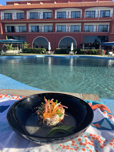 I got a day pass for the beach club and enjoyed my day there very much. It was $300 pesos for the day pass. They put $150 of those pesos towards your food/beverage purchase. You don’t have to spend any more than the $150 if you don’t want. There are nice cabanas by the pool, the service was great, and there were few people. I ordered the ceviche and it was absolutely delicious. I was able to watch the sunset from their pool deck. The only reason I gave only 4 stars is because it seemed like it wasn’t the cleanest. The cushions on the loungers were quite dirty and the bathroom wasn’t overly clean. I’m not saying it was a dirty place and that I wouldn’t go back, but I only give 5 stars when all important aspects are met for me. I would definitely go back and will recommend others to go there. I will be ordering the ceviche again before I leave here! It was sooo good! And, the price is definitely fair for what you get.