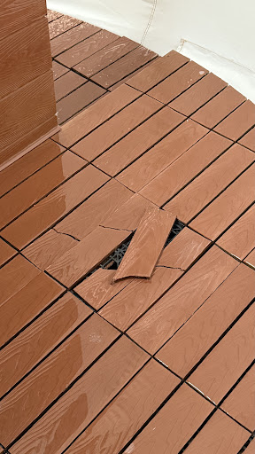 The bathroom set up/decor provided an illusion that it was a nice restroom...however, the platform/foundation was incredibly wobbly. I understand that drainage is probably a concern, but depending on where you step, the slats would come up on the other side as they weren't drilled in. It was not stable while we took a shower and even worse, the toilet was sitting on wooden slats in order to keep it leveled. Completely unsafe.