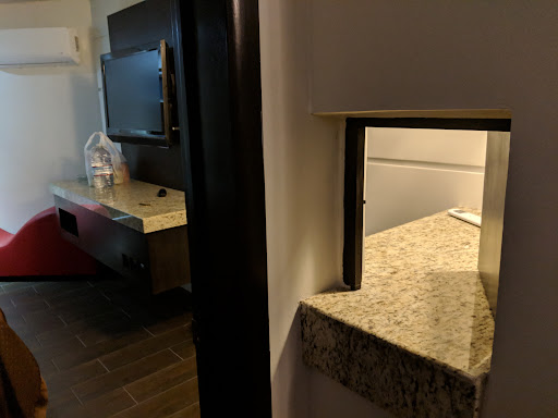 Cons: No lobby, no microwave or little fridge, spotty internet...