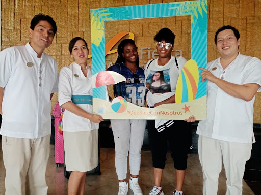 Read moreThis hotel has pros and cons. The pros: It's well located right on the beach and has a big pool outdoor area with lots of seating around the pool and beach. We rented a one-bedroom suite and the square footage was excellent. Quite a spacious room, large kitchen area/living room area and big bathroom. There are also lots of friendly and helpful staff. The cons: It doesn't really have a "natural" beach, more like concrete steps into the ocean. I didn't explore a lot, so I'm sure you could have walked down the beach a bit to access from a different area. It ended up being fine, I'd personally just rather a natural beach without steps into the water. The rooms are also outdated and sorely in need of maintenance. I can look past the older-looking design and amenities in the rooms, but the mold on the caulking was a bit gross. I did notice several maintenance people on site, but this sort of beach-front hotel needs a major renovation, in my opinion. The air conditioner was a timer, which I suppose is good environmentally but a bit annoying if it turns off on you during the night and you wake up hot (you have to turn it off and then back on before you go to sleep to avoid this). The bigger issue was there was no hot water. We arrived during a cold front, it was rainy and windy and we couldn't go outside let alone swim. But the water was just luke warm. I wouldn't mind if it was a less expensive hotel, but it is supposedly a four-star hotel and we paid $300 Canadian a night. I expect hot water in the shower. The boiler appeared unable to actually get the water hot (we tried multiple times, in the evening/morning middle of the day). Our toilet also clogged -- I'm sure this was our kids' fault, but does suggest some older, delicate plumbing. Also, be aware of the hard sales pitch the moment you walk in the door. Decline the offer to discuss promotions/activities over your first breakfast. Just say no (unless you want to spend money on booking activities through the hotel of course). We ended up getting up very early (not on purpose, time change) and left the hotel the first morning altogether (again was raining, so no need to stay near beach). It's sort of a double-edged sword: There's a lot of staff on hand to help you, but it gets overwhelming. At one point we got off the elevator and were asked by maybe 5 different people if we needed help. Practice being polite but firm or just ignore people. It's my vacation and I want to relax, not be bombarded by offers for help etc. Food was fine but expensive, as is to be expected in this sort of place. Drinks also pricey, but you can buy cheap beer at the OXXO and drink on the beach (not by the pool). Finally, I personally couldn't stand the loud music they blasted for 6 to 8 hours a day on the pool deck. But I was travelling with my family, not a 19-year-old on spring break, if that's who they're catering to. Also, good luck trying to take a nap or even just listen to your own music/podcast with headphones. Altogether, I'm giving them three stars. Two stars felt a little unfair, wish I could do two and a half. This place is just OK. Not amazing or great, and I certainly won't stay here again unless I got some amazing deal in the off season and paid 1/3 of...