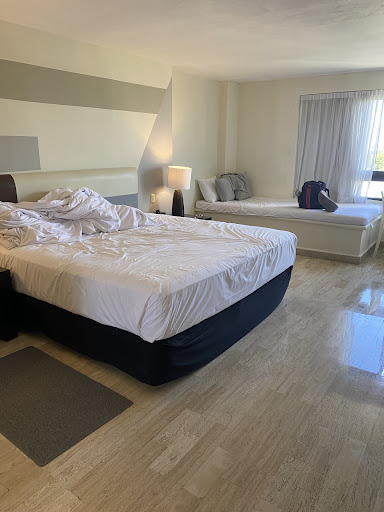 Stayed at this resort through a quick cheap Sunwing package. FIRST thing to note is that they will charge you 900pesos or $50USD as soon as you check in for a tourism and environmental tax. I did look closer into the Sunwing fine print and found that disclosure but it was not very forthcoming. So make sure you have that ready- also maybe this is normal but this is the first time I have stayed in a resort in Mexico so I can’t say. I have no problem paying the tax to maintain the beautiful environment we are visiting but I was caught off guard. SECOND, this resort is at the perfect location for the type of trip we were interested in. It is within walking distance of a Chedraui supermarket (good for groceries, toiletries, apparel, pharmacy etc), a 24hr Pharmacy, Money exchanges, OXXO convenience store, bus stations, 20min walk to Walmart Express (I recommend Chedraui instead), a McDonald’s, the Plaza of Americas (shopping mall and food court), Mercado 28 (skip if you ask me) AND I highly recommend visiting the Parque de les Palapas for cheap street food and evening atmosphere! Ride the R1 or R2 bus for 12pesos a person for 10-15minutes to get to the hotel strip and beaches.