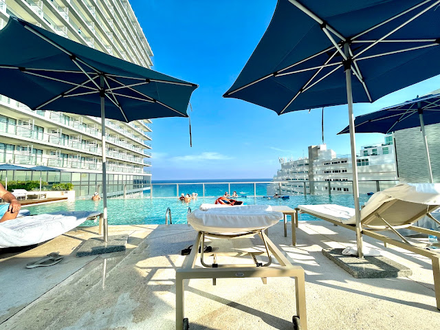 First off, the positives. The resort is very secure with guard-gated entrances. We felt completely safe here. The more expensive room was on the top floor of the hotel which was nice because the ceilings are higher on the top two floors. The room felt very spacious and light. It was on the corner of the hotel facing the lagoon, but we still had a nice north-facing ocean view from the expansive balcony. In general, the resort was clean. There are multiple options for entertainment during the day and into the evening. We only left the resort one night, but stayed on property all other nights for entertainment. Housekeeping and turn-down services were provided daily. They kept us stocked with plenty of bottled water in our room. The small lounge in the Preferred Club lobby offered a private bar and snacks throughout the day. The beach is small but clean. It seems they remove seaweed regularly. The water here is beautiful. The resort is 18+ so we weren't bothered by children running around the pool or resort spaces.