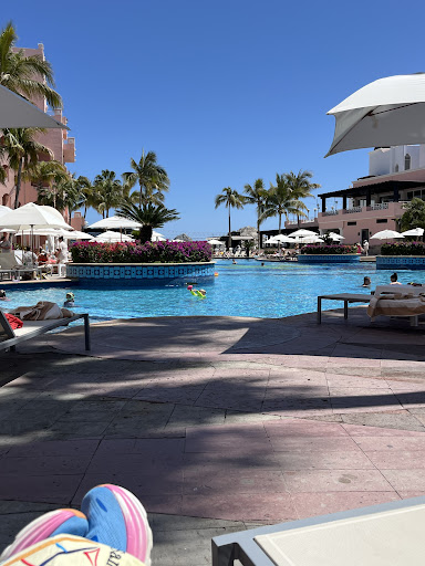 The location is excellent. It is on Medano Beach, which is the only swimmable area in Cabo San Lucas. The water is wonderful. There is a private area with lounge chairs on the beach that is less crowded than the pool area.