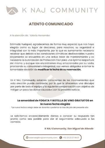 Y lo más preocupante: la única solución que ofrecen si tú no pides explícitamente un reembolso es cambiar de fecha… con una botella de vino y una fogata como compensación. ¿De verdad eso les parece suficiente cuando cancelan parte de la experiencia por causas ajenas al cliente?