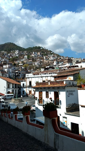 Es un hotel viejo, pero no por eso malo, para empezar tuvimos un problema con la reservación realizada vía Booking, sin embargo los recepcionistas lo arreglaron de inmediato. Si llegas en autobús Costa Line el hotel se encuentra como a 10 minutos caminando, considera que todo es de subida. Es totalmente céntrico, se encuentra a dos pequeñas calles de la catedral de Santa Prisca, tiene una azotea (aunque ellos le llaman terraza) en la cual pusieron bancas para apreciar la catedral y el resto de la ciudad, tiene una sala común en donde de igual manera puedes apreciar la cúpula de la catedral. El patio es agradable con plantas y una fuente que no prenden. Cuenta con un pequeño bar con precios accesibles. Tiene lo básico, agua caliente, baño privado. Todas las habitaciones tienen balcón, sin embargo no tienen vista a la catedral esos balcones sino a la parte trasera de la ciudad y aunque no es tan agradable, se olvida todo cuando llega el atardecer y desde la comodidad de tu cuarto puedes ver cómo se oculta el sol por las montañas. La tv solo tiene canales abiertos. Las camas son un poco duras igual que las almohadas que además son pesadas. Si es época invernal pasaras frío en las noches porque solo tienen una cobijita, una colcha mega delgada y las sábanas. Te dejan dos jabones de barra y una jarra con dos vasos, ( hay garrafones con agua en los pasillos ) En general los empleados son muy amables, no esperes lujos, es altamente recomendable. Aunque está en el centro, ya dentro del hotel no se escucha el bullicio exterior. Tiene internet pero no llega a las habitaciones. Cuenta con estacionamiento. Tiene un pequeño restaurante en donde te ofrecen desayunos (ignoro el costo) pero no lo abren el día más turístico (los domingos, tache) Totalmente recomendable. En la esquina pasan las combis al Cristo monumental, al teleférico (ambas cobran $6.50). Y alrededor está lleno de restaurantes de todos...