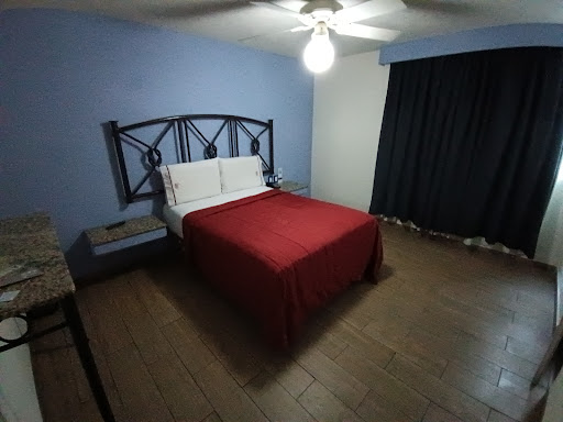 Read moreCéntrico y bien comunicado. Limpio en general. Siempre se ve gente aseando los cuartos adyacentes o los pasillos. Tv con múltiples canales amenos por cable y sistema para DVD. Baños adecuados con agua hiper caliente a toda hora (también hay fría eh). Algunos cuartos pueden ser algo ruidosos, dependiendo de la orientación (preguntar en recepción, aunque habrá que conformarse con lo que haya, pues dado sus bajos precios, en fines de semana y por la noche, se satura). Me parece su dueño es un español y sabemos en Gdl sus afanes hosteleros. Había un restoran: Mesón La Paz, con buena paella pero ya no. Como quiera se puede conseguir alimentos y bebidas varias en recepción, igual objetos para el aseo por si viaja uno ligero y olvidó lo más indispensable. Bebidas hidratantes y energizartes para restaurarse de jornadas agotadoras. Hay garage limitado y hay que dejar la llave del auto. Insistir en dejan seguro el auto, pues aunque la Av La Paz es amplísima es zona donde los ladrones pueden dejarlo en zancos en un santiamén. A mí 2 veces faros y parrilla por dejarlo a dormir en la calle...Son pioneros en algo que apenas se está implementando en Europa, pues pueden rentar para descansar por horas y no un día completo. 3, 6, 8, 12 hs según disponibilidad. Un usuario de Trip dice que se hospedó una vez pues "venia de paso". Nunca...