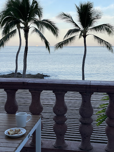 A very special place. Even with eyes closed the ambiance is wonderful - palms fronds rustling in the breeze, birds bleating in the trees, waves breaking on the rocks, live music electrifying weekend nights.. oh, and the aromas from the restaurants above and below. I just wanted that sliding door open any time we were in the room! The view from our balcony was hard to beat! Los Arcos and the Mountains trimming the blue horizon to the south and more mountains and city lights as far as you could see to the north. Some palms and banyan trees sway and shiver in front of the water and rocks out front - boats pass day and night. The vista is framed by tiled roofs and cupolas up and down the hillsides around. An exotic mix of nature and architecture. Truth is it could've been a dump of a room and I could have looked past that but the room was very nice! The beds were comfortable, there were pretty tiles on the wall and in the bathroom, there was a reading lamp, it was clean, there was air conditioning and television. The wifi was weak and we could've used more towels and a bedspread but for a family of four to be comfortable in one room with two double beds is remarkable! There was even a little fridge and gas burners and dishes but I had no desire to cook on vacation - especially with two restaurants a couple flights of stairs away! We LOVED the restaurant on the beach, by the way, and it was so nice to be served under our palapa during the day. We never had to leave the sand to get a drink or lunch! The beach at the hotel was small but felt large enough for everyone there - even on Sunday when local families came to spend the day. There were three openings I the rocks for swimming and the snorkeling was good- we saw many fish and even an eel. My youngest son delighted in the tide pools on the rocks - each its own world of sea life. The front desk attendants were so helpful- getting us cabs and arranging covide testing right there in the beautiful open air lobby. In just a few minutes we could be whisked into to the romantic zone for five dollars or less. As far as the kids perspective, they honestly preferred the large timeshare resort we had stayed at the week prior because of the sprawling pools and grounds, the gym, the larger room and mostly because there were people their age with whom to play, but my husband and I definitely fell harder in love with Conchas Chinas. We were confused upon arrival because of the name change to Marboka but some googling and asking around in the cab landed us at this wonderful destination. Warning - if you aren't fit for stair climbing this place is probably not for you. We can't...