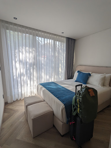 Read moreWe recently stayed at Casa Cibeles for several nights and would definitely stay there again in future. The location is excellent, a few minutes' walk to the park and surrounded by nearby restaurant options. There's also a fairly large grocery store nearby. We enjoyed the pleasant view of the neighbourhood and the full size fridge with freezer was very useful for drinks and breakfast foods and for keeping our paletas frozen until we were ready to eat them. The hotel seems to be brand new and everything is very well chosen and constructed. The TV is very modern - you can easily sign into apps to stream shows. Our shower had really good water pressure and there is filtered drinking water from a tap in the kitchen. Staff are very kind and friendly. Housekeeping staff do a great job - everything was super clean and tidy. The air conditioner is efficient and quiet - we did use it at night as we didn't want to leave the balcony door open due to some mosquitos and the poor air quality overnight. There's laundry in the basement (free!) and a nice rooftop patio. The nearby club is indeed noisy on weekends, but our room was on the opposite side of the building, so it didn't bother us too much (it might be an issue for light sleepers in the front-facing rooms). The only suggestions I would have for the hotel is to get rid of the fake books and decorations on the table by the front door and to add a comfy chair and light for reading/relaxing (the chairs at the table aren't super...