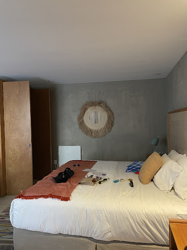 Beautiful boutique hotel about two blocks from the center square of the Coyocan neighborhood. The staff is extremely friendly and helpful, especially Angel. The rooms are modern and comfortable and some have balconies and small kitchen areas. There is an amazing upper sitting area that is well shaded with a hammock and seating. The central courtyard of the hotel is beautiful with a small fountain. This is where a substantial breakfast is served each day. The rooms do not have air conditioning, which at first worried me. But, with a fan provided by the hotel the temperature was fine in the rooms at all times of the day. At night with the windows open it can even be chilly. The entrance to the hotel is not marked with a sign, but the address is correct. Just ring the bell. The location of the hotel is fabulous. The neighborhood is safe and walkable for many blocks in each direction including to the Frida Kahlo museum. The center square of Coyoacán is very lively and very beautiful. There are many restaurants in the square, as well as coffee (Starbucks) and bakeries. There is also a “turibus” stop for city tours in this square. We spent six days here and would...