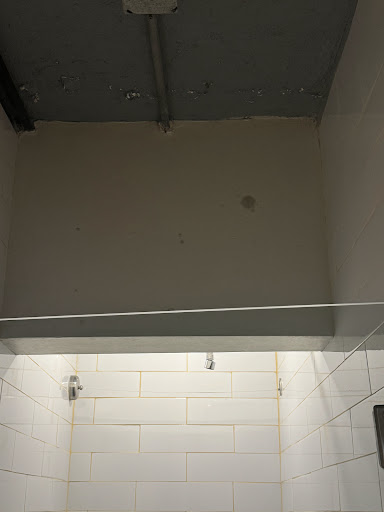 Not a lot of solid surfaces to put things like bathroom products on. I'm disabled with a spinal condition, and so bending down whilst in the shower to pick up soap, shampoo, razor, etc is really dangerous for me. The sink is on a slatted kind of shelf and the window sills are narrow.
