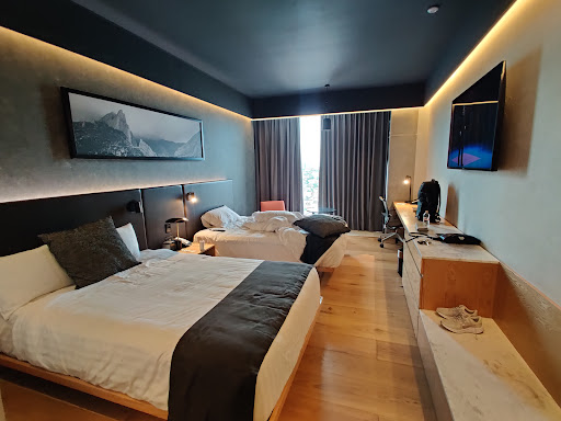 we HATED this hotel, we visited Monterrey from Dallas and when we were searching for a hotel, this one got out attention, it’s pretty buy the service was HORRIBLE. 1- the AC didn’t work, we spent two days hot and we called 6 times until maintenance finally showed up to fix the issue after 37 hours.. 2- My mother was with us and one day she ordered dinner to her room around 5:30 pm, there were not utensils, we called and they never arrived until almost 9 pm. 3- privacy, there is not privacy if you are with friends or family members, in the hotel room there is a Cristal wall where next to the toilet and you can see EVERYHTING, you can see the person using the bathroom. 4- if you travel with you wife or husband or girlfriend or whatever, if you need to use the bathroom at night, you will wake up the other person because you need to turn on the lights and next to the bed is the crystal wall that separated the toilet and the bed .. so the light will be so bright for whoever is sleeping. There are sensor light on the floor but they turn pretty quick after 2 seconds so if you are doing your necessities you will need to be moving your legs so the lights won’t turn off. 5- parking is very limited. 6- another time we ordered dinner to our room and the person that brought the food DEMANDED cash tip, we were gonna pay and tip with our credit card but he got upset about it. 7- pool is very small and no sitting , you need to either stand and be cold since it’s not deep, or be on your knees and drowning … Also the area where it was very dangerous, for the price we thought that it would be in a better area. It’s pretty ghetto.