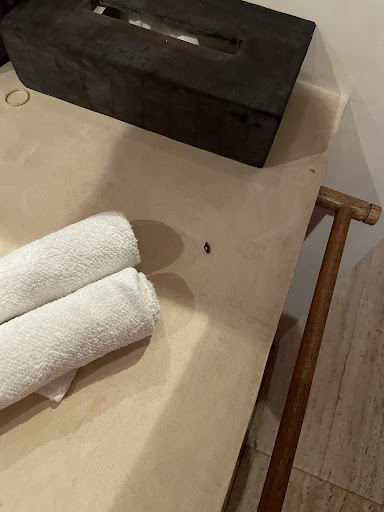 Read moreLa arquitectura es preciosa pero overpriced: el plato más barato son 3 tacos y cuestan 380 mxn +propina…nada más llegar te reciben con un cocktail(yo pedí un suero y me lo cobraron) y te sientan y te hacen firmar una carta y pagar 5700 mxn de deposito (nosotros ya habíamos pagado ambas casas) en caso de que dañes algo de la habitación o pongas música más alta de lo que ellos decidan…. la habitación está llena de popos de roedor o puede que sean de lagartijas (cada mañana había al menos 7 u 8 ver foto) y por mucho que esté en mitad del bosque resulta insalubre. Hubo tormenta el 2ndo día lo que inhabilitó los dos ventiladores que hay en la sala comedor por el resto de la vacación de manera que hizo un calor insufrible. Alquílamos las dos casas y de repente el 2ndo día otra pareja empezó a usar las instalaciones o sea que no cerraron la propiedad para nosotros, nos cobraron lo mismo a las 6 parejas pero las habitaciones no eran comparables en calidad: la habitación Chicatana tiene salón y mide 3 veces más que las otras, la habitación Chukum es la única que cuenta con cristal de manera que era la única que de verdad tenía aire acondicionado…las dos habitaciones de la casa de la que no muestran foto hace un calor insoportable. No tienen suficiente staff: el pobre camarero no daba abasto. Pedíamos la cena y no servían nunca más de 2 platos con una distancia de 35 min entre parejas… y éramos un grupo de 11 entonces nunca cenamos juntos… y para terminar su piscina mancho mi bañador blanco de amarillo (pongo foto de una camisa blanca debajo para ver el cambio) y no se hicieron responsables. Bonita vacación pero no...