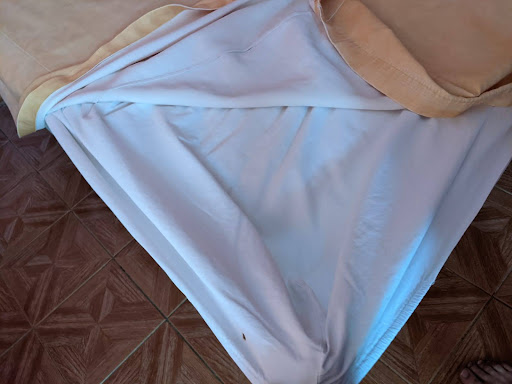 24-26/1/24 Room 11||||We three middle aged guys from London had booked a hotel online from Birmingham where we were flying from to Cancun. We were intending to stay a couple of nights.||||On arriving the hotel found that our booking was 'cancelled'* so recommended we stay in an unlisted unreviewed hotel out of the centre. Finding it on Gglmps it was next to a sex shop. Luckily we had not paid as the system is to pay on arrival in cash...||||*The receptionist said that our credit card could not be verified (csv incorrect) so the booking was 'cancelled'! This has happened before with Bkg.c and an email has arrived to tell us... unfortunately we were on the flight, Cancun Airport was busy and chaotic with no functioning wifi or SIM shops. The roaming charges are exorbitant. Oh well.||||Using the hotel's internet I looked up TA to find this place a ten minute walk away. We were desperate, laden with our carry on small rucksacks and it was hot & humid! Gglmaps showed it was on the busy road but we were desperate for a budget place. We reserved it immediately.||||We walked down the Ave 10 to find it quite easily and on entering the friendly male receptionist found our booking and took our 1800mex$ for the two nights. He then locked up his office and took us to the room on the first floor.||||It was a reasonable size, firm double and single bed with clean sheets.||||A large fan controlled from the bedside blew our spare notes around. A small led tv was mounted above the single bed as was a mirror and fold out table. The single bed was freestanding in effect with to the pilllow by a ledge under a clothes rack. The only (120v) electric socket was above to the foot of the bed, (not very convenient) so our multiUSB plug called in handy for most of our devices. ||||A window onto the corridor had a curtain over it and intact mosquito netting. Another mirror was between it and the door.||||The shower room was clean and bright with a netted high up window to 'balcony'. A proper toilet and sink (but no plug or overmirror lightbulb - I bring my own for budget travelling!). The room had a lined bin for the loo paper. Signs instructed users not to put anything (other than our waste) down the toilet!||||The small balcony had a chair in it overlooking an unkempt 'garden' with a large tree in it. It was quiet though except for some building work next door which is innevitable nowadays in Playa. An electric socket did not work unfortunately so one less useful socket to charge devices. A ceiling light worked though. The door onto the balcony has an intact mosquito net as the windows to the outside did not.||||Overall there were not quite enough surfaces, hooks or ways to dry washed clothes for three people. A washing/drying line in the balcony would help. I 'repaired' the dropdown shelf over the single bed so it functioned for devices to be left to be charged on. The traditional two flatpin sockets were flimsy as usual and our adapters struggled to keep in so charging failed at times...grrrr. The British solid three pin earthed plug is so much more secure and solid albeit bigger and heavier! ||||Our first night was peaceful as we are set off the road away from noisy motorcycles, car stereos and lorries. We were exhausted though after the flight, getting there and the trauma of the 'cancelled' booking! It was 05:00 London time when we hit the sack!||||The beds were comfortable and we did not need the sheet provided as it was so hot even with the fan on.||||Up the road into the mainland the main banks were present, the best and cheapest ATM was Inbursa ten minutes walk away and worth the $mex 20.4 per transaction if you can understand the misleading instructions! ||||Local taco places were generally cheaper and popular with locals.||||The beach was only five minutes down the main road to the ferry. The locals' narrow beach is through the pier (past Senor Frogs) to the south.||||In the morning we got up early, showers were hot early but tepid later it was 26degC anyway at 07:30! On return mind from the beach at 19:30 the water was hot.||||The cracked sink has a wobbly but functioning tap and the pressure was just enough to jet out a razor. A bar of soap was supplied which was useful for the rest of the holiday we hoped!||||During our stay the wi-fi and internet was patchy and overall slow but enough to do the basics, including updates, TA reviews and gglmp searches. ||||On our first day there was no water after 10:30 which was unexpected so the toilet was left unflushed. It was back on again when we returned from lunch.||||Overall the stay was fine...