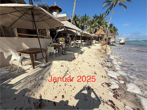 -The beach was washing away/sand bags were in place. Only room for the restaurants tables on the beach. However we brought towels and were easily able to walk down to the main public beach about 5 min to the right and enjoy the swimming and sand!