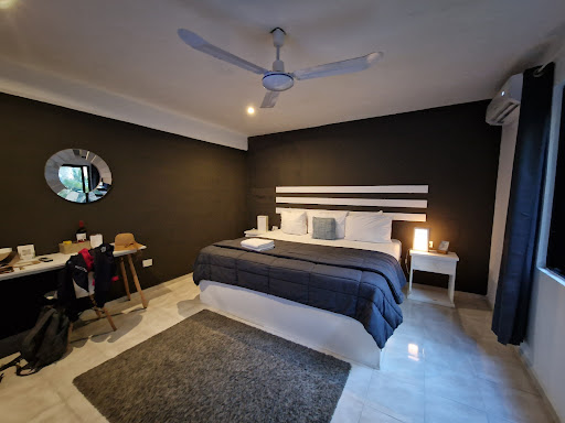 Read moreThis is my third time at Che Suites. I come here between travel days and for a little luxury in between hostels. I can't say enough good things. Mariana is amazing, kind, and helpful. She reaches out just after booking to make sure check-in and arrival go smoothly. She's very helpful and will give lots of tips. She always remembered me and went the extra mile to make me feel welcome. ||My favourite thing about Che Suites is the beds. I travel full-time and the biggest gamble when I book anywhere is the mattresses and the number/quality of pillows. You get a California king bed, with a luxury mattress and FIVE pillows! It's a little slice of home comfort. The WiFi is excellent, there's a desk in the rooms to work from and all the little touches make it a really lovely space. Great AC, a fridge outside the rooms for the floor to share, and hot showers with great water pressure. It's extremely clean, the AC is on ready for your arrival and all the small considerations are what separates it from anywhere else I've stayed. You immediately feel taken care of. After a long journey, or a week in a crazy hostel, it's exactly what's needed. |||The rooms are excellent value for the area and for what you get. 50-60gbp for a bit of luxury is an absolute steal!||Location-wise, it's in a gated community on the PDC side of the Playacar area and has access to the nicest, quietest beach in the area. A short walk from 5th Avenue and everything you could possibly want in PDC, but tucked away enough that you escape...