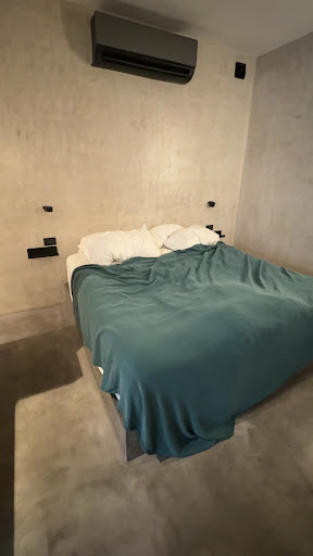 We stayed in a ground-floor room, and it couldn’t have been more perfect. It had a small patio, and the design was warm and clean. The room was equipped with everything we needed: a small kitchen with utensils, a refrigerator, a safe, a hairdryer, a small closet, and air conditioning.