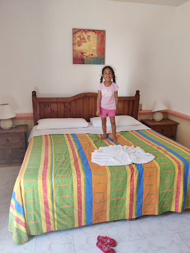 Read moreThe hotel is in a great location, just right off the pedestrian only 5th Ave and close to the beach (though not really a great beach to be had in Playa Del Carmen) and just a few blocks from the Tourist ADO station. Just note though that 6st has some construction on and although taxis seem to access the hotel, mini vans won't and will usually wait for a pick up up the street at the OXXO on 10th Ave.|||| Hotel price was great, even for New Years and arriving very early in the morning, I was able to pay an extra 400 Pesos to get into my room before the standard 3pm check in.|||| My room upon entering looked great, it had a single small bed next to the door that I was unware I even had a 2nd bed. A wooden dining table with 4 chairs, a smallish balcony which wasn't as good as some of the other ones I saw due to being more of a corner unit, but still over looking the pool. A decent sized fridge and a microwave. Though there isn't any plates, utensils or the like so you'd need to get over to the Chedraui or other grocery stores to pick some kitchen supplies up that you might need.|||| The bedroom had a very large bed and the infamous swan towel which looked really nice. There were outlets beside each side of the bed, a very small TV up in the corner (which I never bothered with) and something I over looked as I had placed luggage on it the entire stay until the last night, was a remote for the AC unit which exists. I was using fans the entire time after hearing there was no AC in the hotel, but that either must have changed recently or maybe others, like myself, just missed the remote. And that made a whole lot of difference with the humidity. There's even options to turn off the blue display on the AC so you can sleep better and still have it running.|||| The walls are kind of barren and lack painting, but still it's a nice design. The safe is a little awkward. You actually have to request the key from the front desk which also includes the locking mechanism. You need to put that into the safe and then lock it that way, and to open the safe, you have to insert the key and physically remove the locking mechanism from the safe to open it. A little odd, but functional. On first impressions one might think the safe is actually broken as it just looks like a shell with no way to lock it. So make sure you request that at check in.|||| Bathroom was ok, the hairdryer had a lot of what looked like mold on top of it, and I never bothered to use it anyways. Shower water was never warm, always cool. A friend who stayed there as well said they had to wait a good 15 mins with the hot water running to get any, but I've been to other places up in Cancun that were similar, so just don't expect hot water often or as in my case at all. I was ok, because remember, I forgot the place had a AC unit in it and I was hot inside all the time.|||| The grounds are good, they have a game room with a ping pong table and couches and a TV and the pool has a nice bridge separating two different parts. A currently closed swim up pool bar and then a smaller shallow pool on the other side.|||| The only thing with the pool is that they do scuba training there for their tours which share the property. So often you will see groups of people with their gear in the pool learning the basics.|||| Overall a decent place and great for the price in this area if you like the tourist area. It is close to all the excursion booths and such as well and a close walk to the Cozumel Ferry too, not to mention walking to Chedraui, Walmart, Mega, etc. making it a...