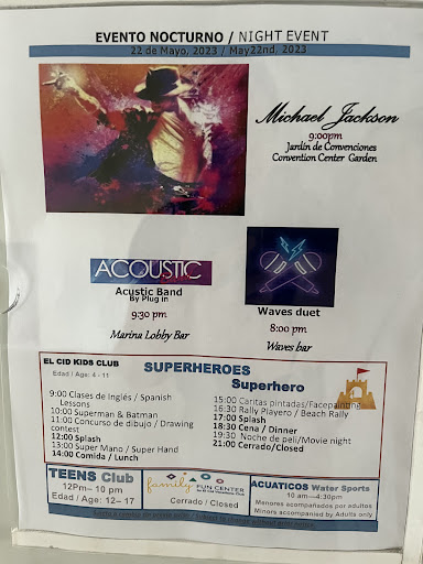 AWESOME STAFF: -ALL of the Kids Club staff. I was worried our 10yo would be bored or think it was for little kids but he ended up wanting to stay more! They gave the kids a framed picture to take home and our 5yo walked up to it yesterday and said "I miss you." Kids Club is open 9am-9pm and each day they do a morning swim; lunch; afternoon swim; dinner; evening show if it's at 8 pm; and other activities in between those things, some inside and some outside, depending on theme for the day. GRACIAS Mar, Claudia, Abril, Roxi, Grace, Joss, Nico, Xime, and Andy! -Rodolfo, our server at Urban Taco Fest, which had no pesce/vegetarian options. Rodolfo went to the chef and made sure we got a plate of grilled fish & vegetables for our tacos! Above and beyond service. -Aline, Ixchel, and other Activities staff who did fun activities around the pool and helped with the evening shows. -The female singer at the Retro Show was fantastic!