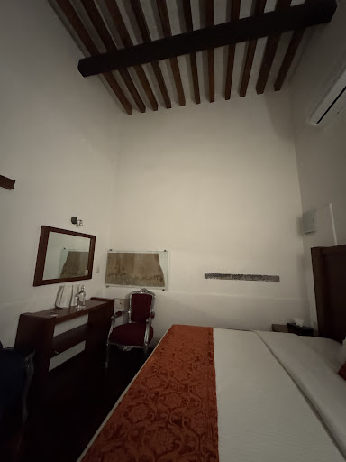 After experiencing a terrible night around the corner at Kuku Ruku, we stumbled on El Serafin and our prayers were answered. El Serafin is a charming, calm clean hotel with wonderful service and comfortable rooms. We were greeted by Alexis, the morning manager, who showed us a small yet inviting room that had a sitting area separate from the bedroom with king-sized bed, and importantly, it came equipped with air conditioning. ||El Serafin is located within Centro Historico, just a few blocks from Jardin Zenea and the many other beautiful squares within the center, close to great restaurants as well.||El Serafin pays attention to detail. The lobby has a sitting area with carefully curated jewelry and trinkets, along with artisanal tequila. The main hallway has a blackboard with thoughtful sayings to inspire your day. In the bathroom, the blow-dryer is contained in a lovely bag, the make-up mirror cord is encased in a decorative bag. ||Breakfast is also included and there detail shines as well. Each day a staff member asks at what time you would like your breakfast. At that time Alexis brings a tray elegantly adorned with fresh fruit, warm toast with jam and butter, yogurt, fresh juice, and coffee. The only improvement here could be that the coffee is stronger. ||One small gripe was the TV. It was a bit small and had been installed upside down so we could not tilt it downward. Aside from that the experience at El Serafin was delightfully tranquil. I highly...