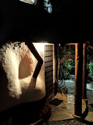 This is a project by the owners to try to live with minimal impact on the environment. They are water self-sufficient from rainwater. They built their houses out of mud and set glass bottles in the walls to add sunlight to the rooms. They grow some of their food. They have adopted several dogs. They provide employment to the locals in the form of maintenance of the outbuildings and pruning of trees.The food was good, and the lodgings were...