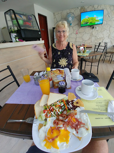 Lastly, the food! The included breakfast is amazing! I literally had the same thing every day because I couldn't get enough of it. Ham and cheese omelet, with toast, beans & chips, mini salad, and coffee & juice. Yum!! The restaurant next door is good and the pizza /pasta restaurant one more door down was my favorite dinner place. Side note: You can refill your water bottle every morning in the reception area, with the large water...
