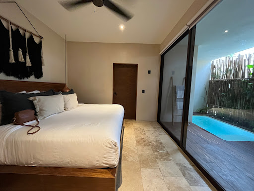 Read moreThis place is a hidden gem in the La Veleta neighborhood of Tulum. The hotel is very cute, with a small infinity pool, lounge chairs, and bar in the central courtyard (and lots of tropical plants everywhere. My room was exceptionally appointed and it was obvious that someone paid a lot of attention to the little details: the linens were luxurious (the bed was the most comfy hotel bed I've ever slept in), the toiletries smelled amazing, even the facial tissues were thick and plush. My room had a mini kitchen (complete with high-end tableware and glassware. The room was tastefully decorated with the boho aesthetic you expect from a hotel in Tulum, but it wasn't over the top. The selection of snacks and beverages that were available in the room were great, and I loved that they provided filtered water in reusable glass bottles rather than in disposible plastic bottles. Last but not least, the outdoor shower and plunge pool really made the room extra special. The concierge and the rest of the hotel staff were great.