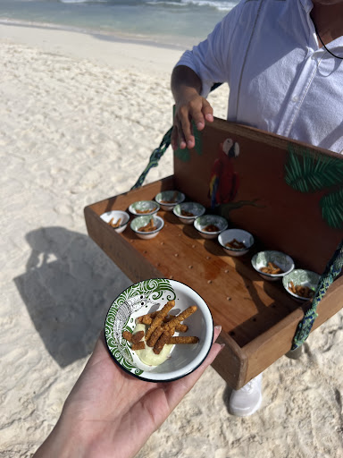 Arriving at Maroma is like being welcomed into a private residence. The airport transfer included complimentary Veuve Cliquot Champagne and snacks for the 30-minute drive from Cancun airport to Maroma. The resort has no check-in area/lobby. You are greeted with a delicious Maroma margarita and a Mayan cleansing ritual. Check-in occurs in the comfort of your room.